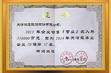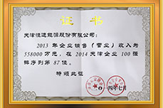 天津市民营企业【健康成长工程】销售收入百强企业(第26位)
