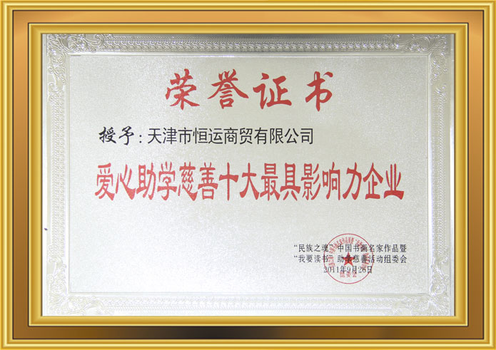 “民族之魂”中国书画名家作品暨“我要读书”助学慈善活动组委会授予公司“爱心助学慈善十大最具影响力企业”荣誉称...