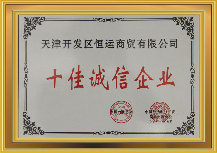 中国公益总会、中国经济科技开发国际交流协会授予公司“十佳诚信企业”荣誉称号