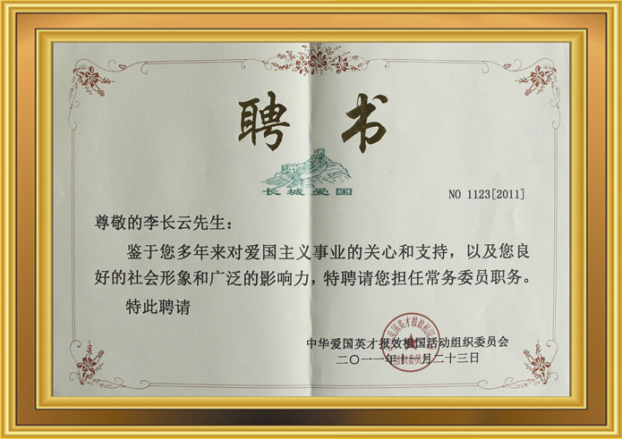 李长云主席受聘为中华爱国英才报效祖国活动组织委员会常务委员