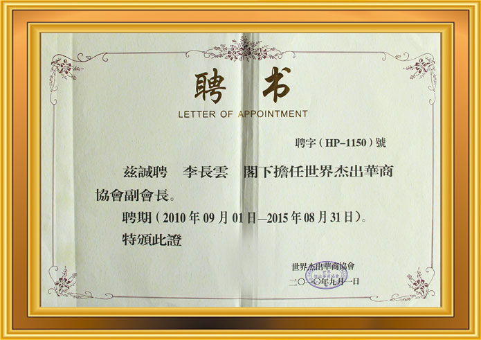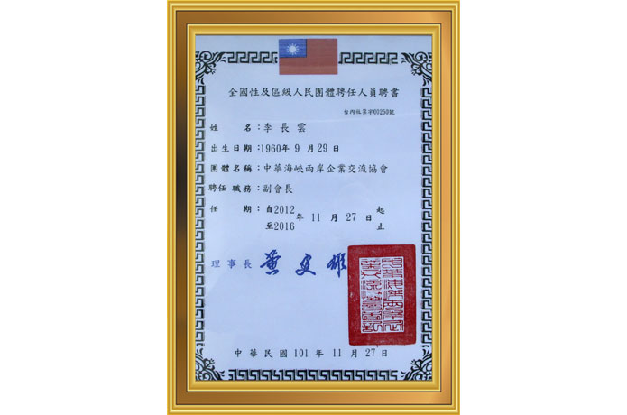 李长云主席受聘为中华海峡两岸企业交流协会副会长