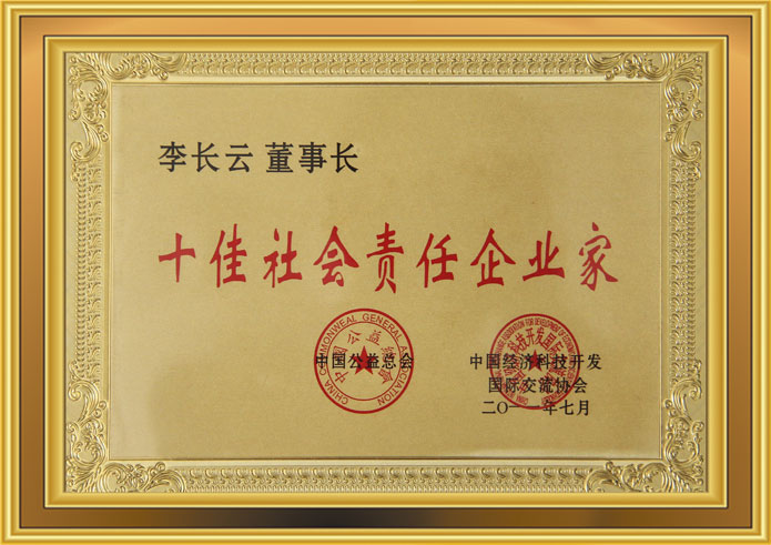 中国公益总会、中国经济科技开发国际交流协会授予李长云主席“十佳社会责任企业家”荣誉称号