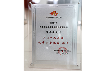 恒运能源集团董事局主席李长云荣获天津开发区总工会“2016年度优秀工会之友”荣誉称号